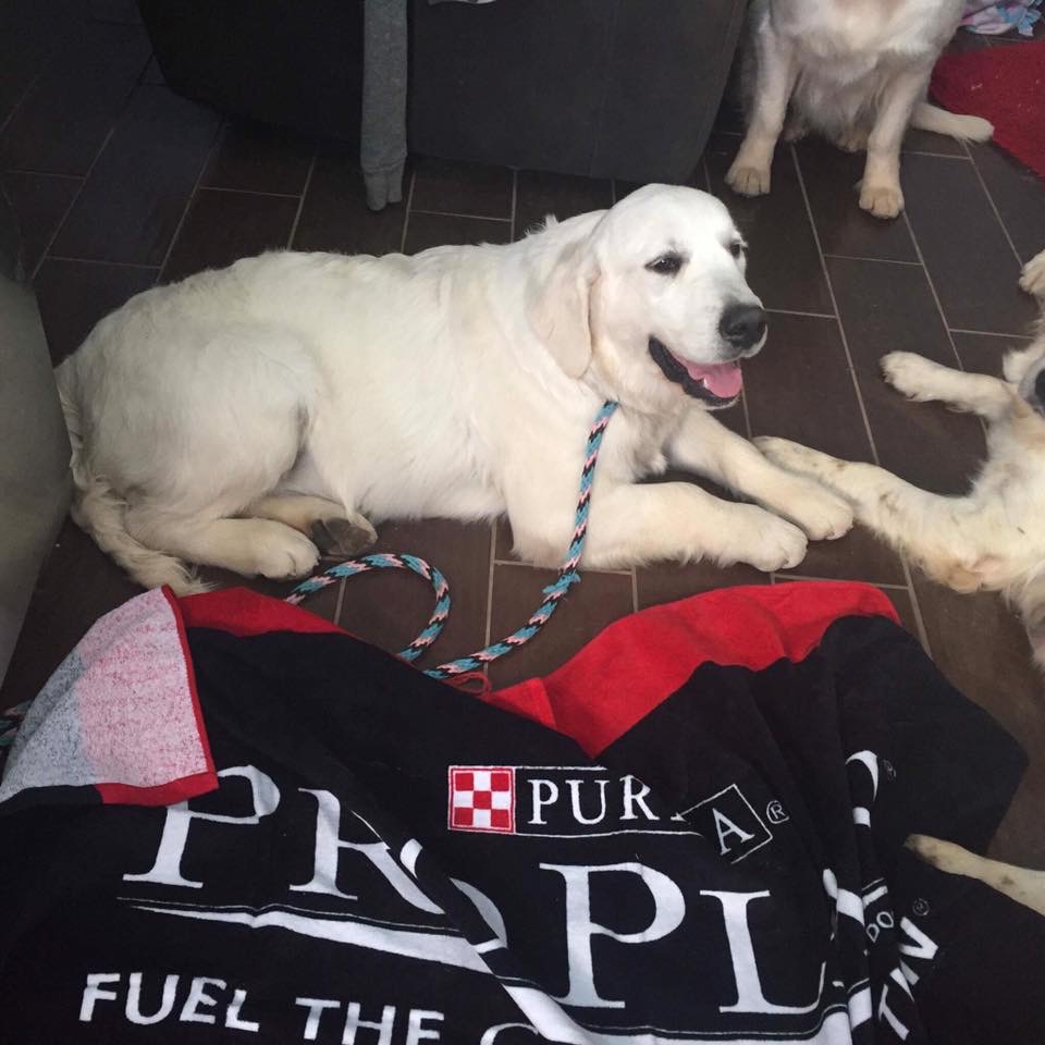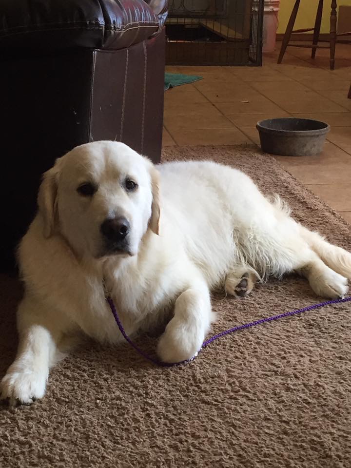 Simba is a gentle, loving, soft boy. He loves children, and swimming. He is a gorgeous, sweet boy. He loves his job as a therapy dog. He has all his health clearances and is available at stud to approved girls.