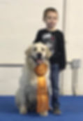 Simba has earned his CCA (Certificate of Conformation Assessment) from the Golden Retriever Club of America, certifying that she meets the official Golden Retriever breed standard. He also has 7 AKC championship points and Therapy Dog certificate.