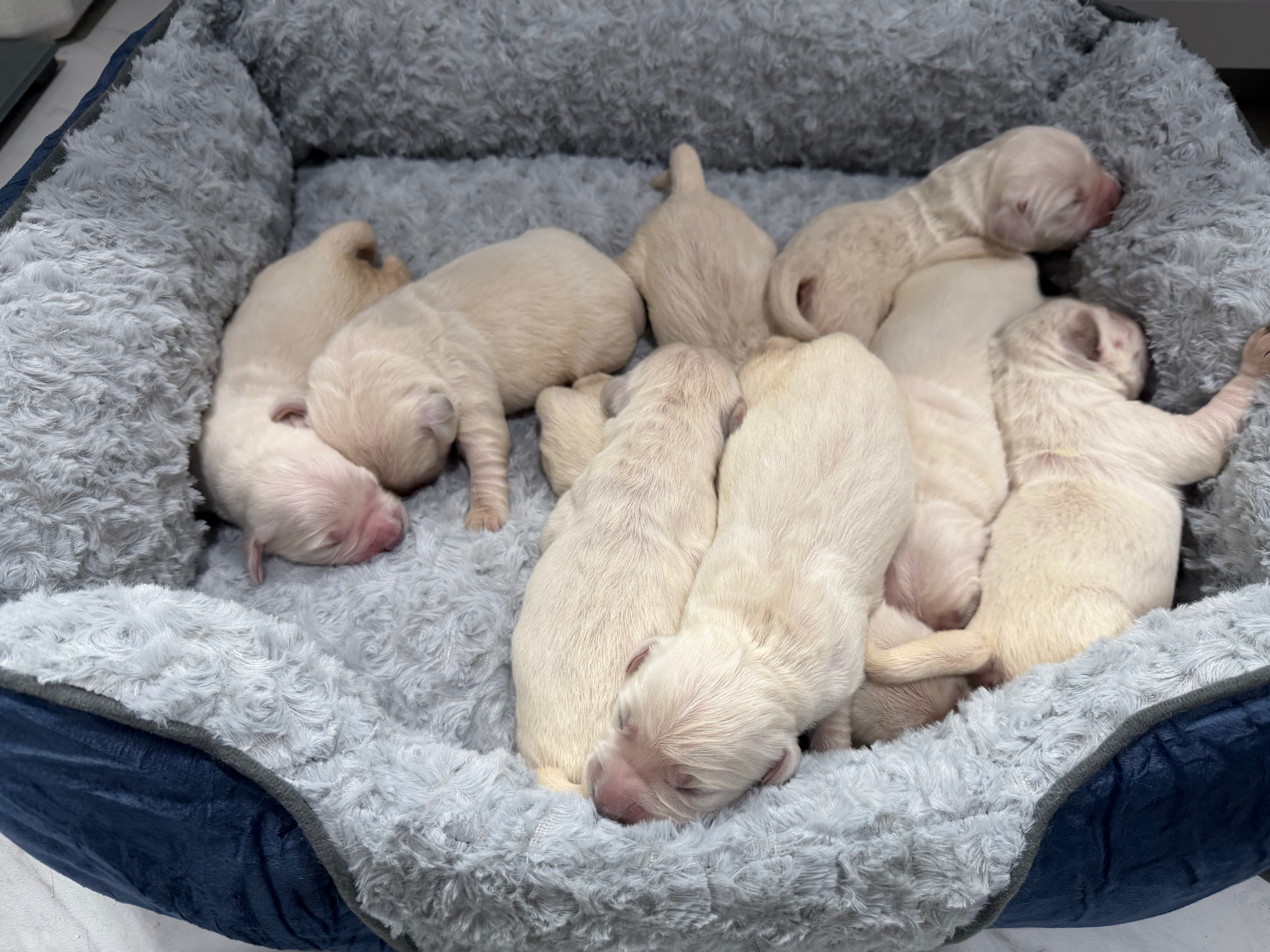 Puppies Now Available for Reservation Marley and Bowie's puppies were born on March 20, 2026, and will be ready for their forever homes on May 9, 2026. Families will have the opportunity to pick their puppy on the same day, allowing them to see each puppy's personality. The price for each puppy is $3,500, with a $450 deposit required to hold a puppy. Deposits can be made via the "Buy Now" tab on our website. We have 6 girls and 3 boys! Visits and pick-up will be scheduled in the order reservations. Final payment is due at the time of pickup, and while cash is preferred, we accept checks and credit cards with an additional 3% processing fee. Sales tax is 6%, totaling $210. We can also accept payments through Venmo, Cash App, or Zelle.